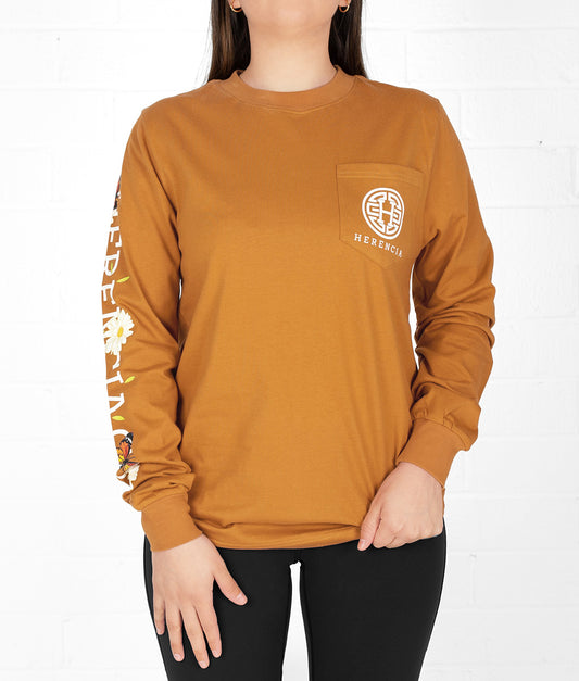 State Butterfly & Daisies Long Sleeve Pocket Tee
