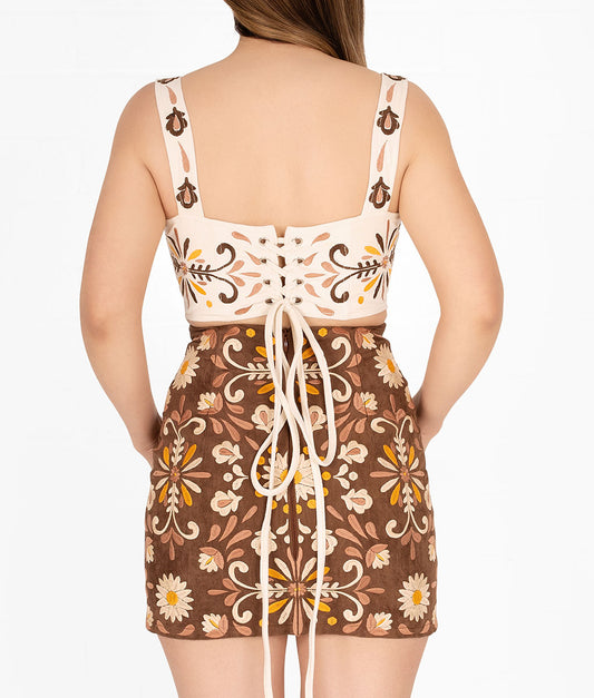 Plebita Embroidered Suede Corset Top- Holiday Edition