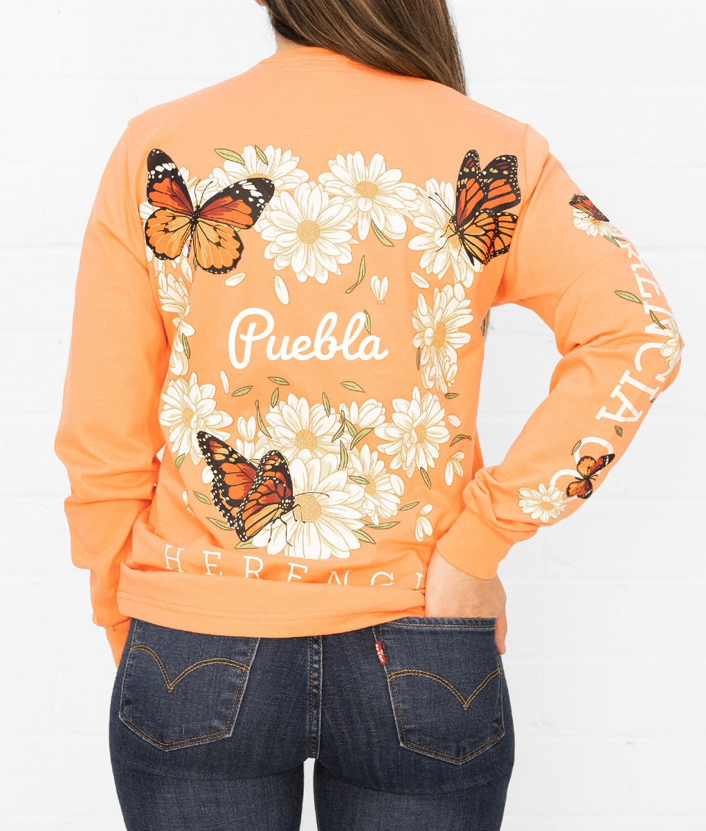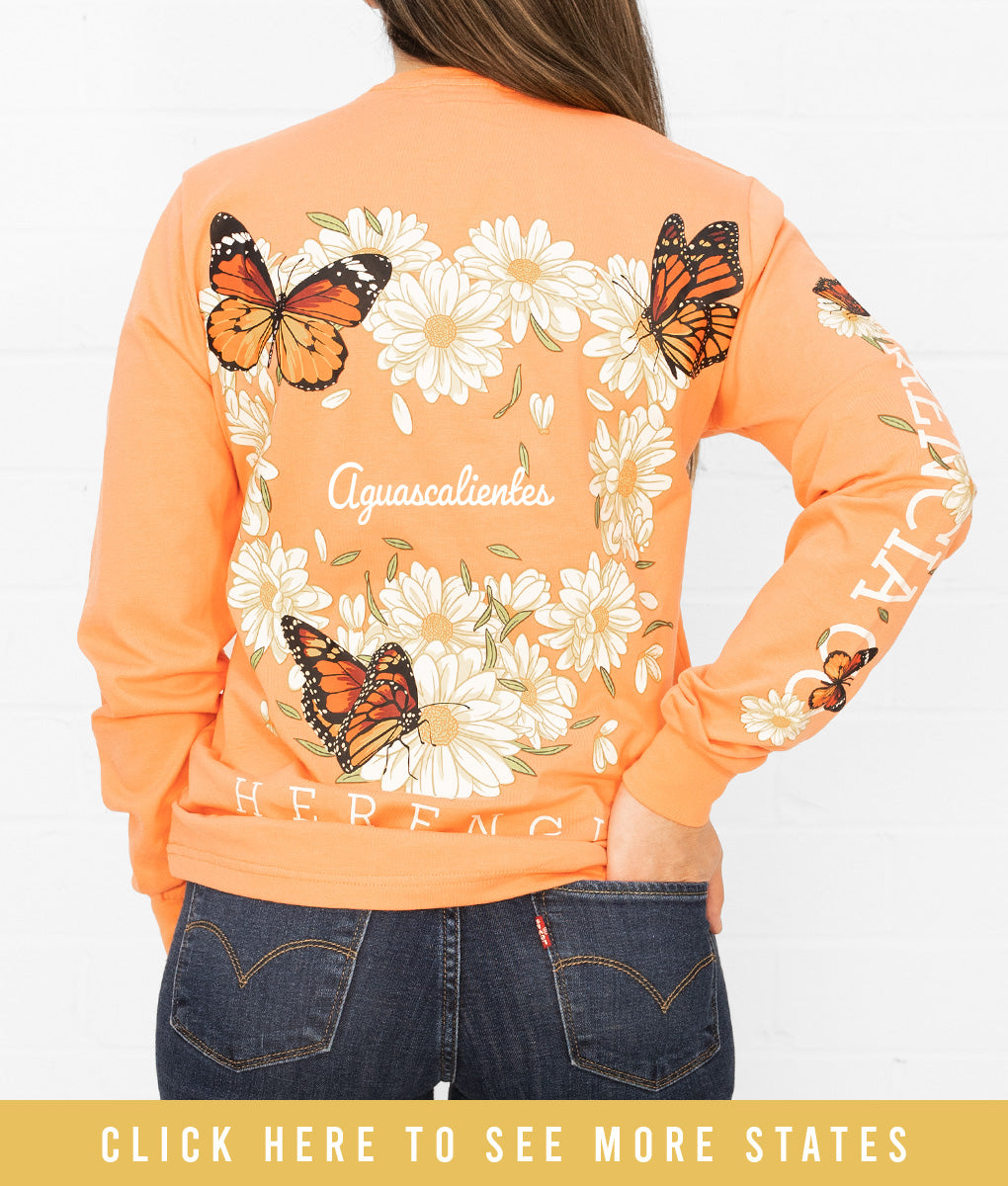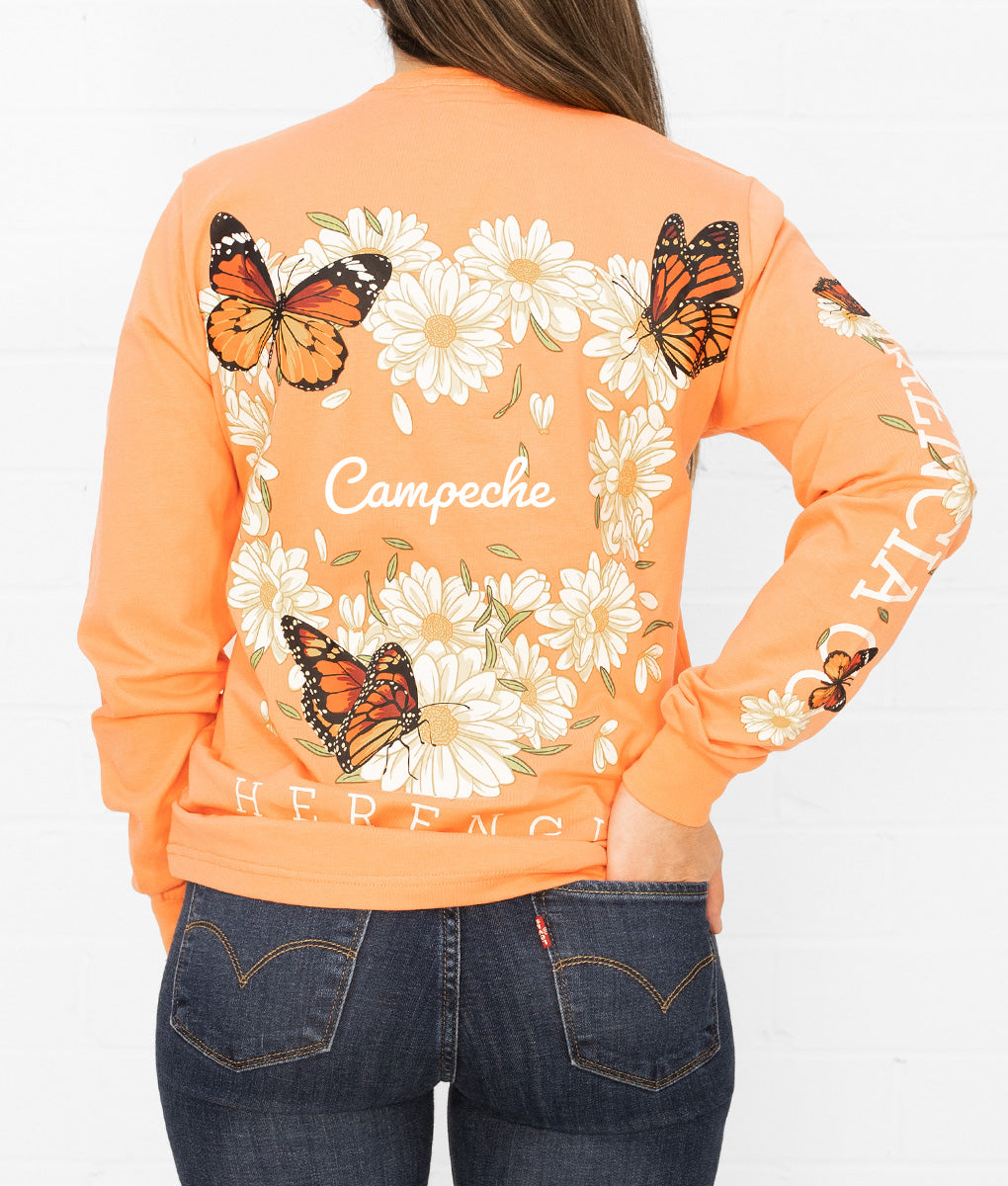 State Butterfly & Daisies Long Sleeve Pocket Tee